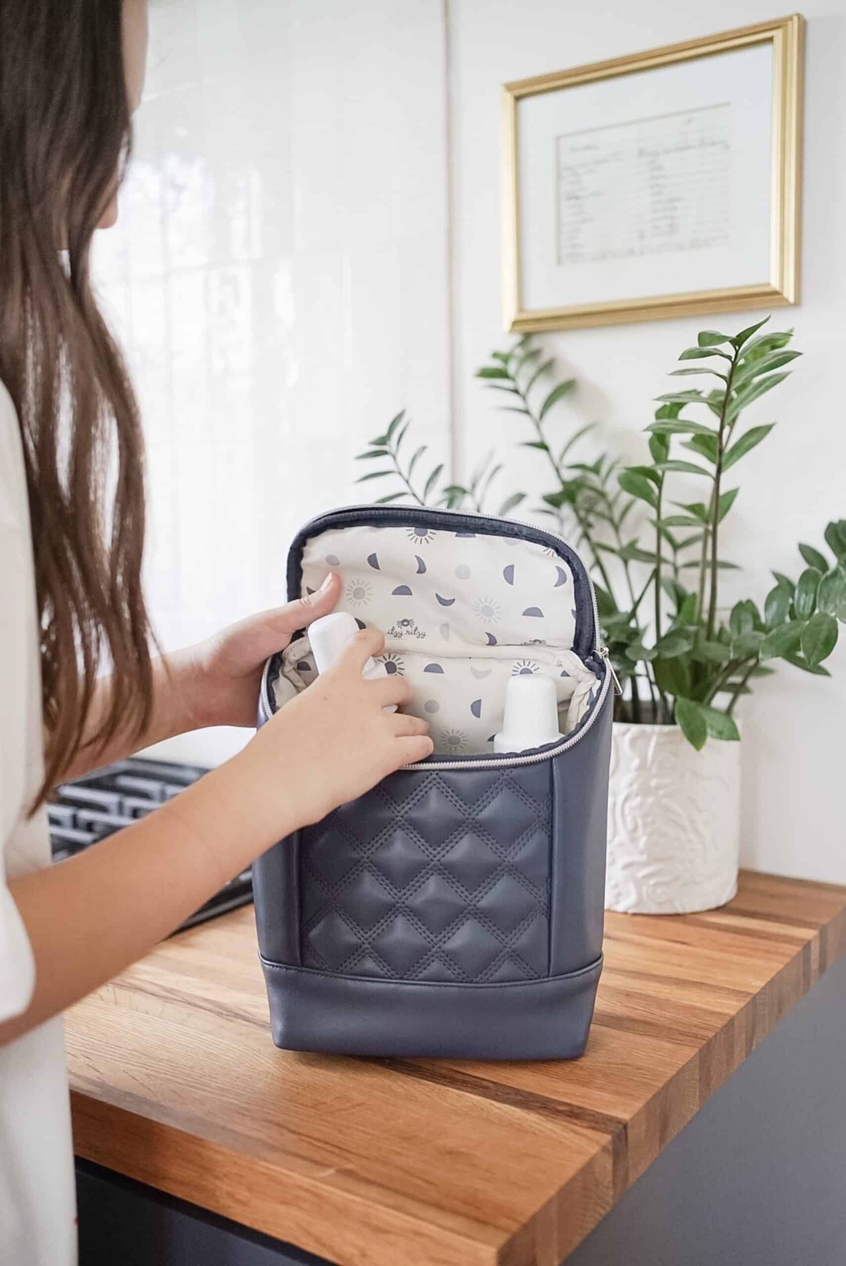 Parent in style! Itzy Ritzy’s Chill Like A Boss Bottle Bag brings an elevated and ultra-versatile look to a classic essential for parents on the go. Designed with a spacious and insulated interior, this bag easily holds up to three tall bottles while keeping them warm or cool. It also features an interior pocket that can hold an ice pack (not included).