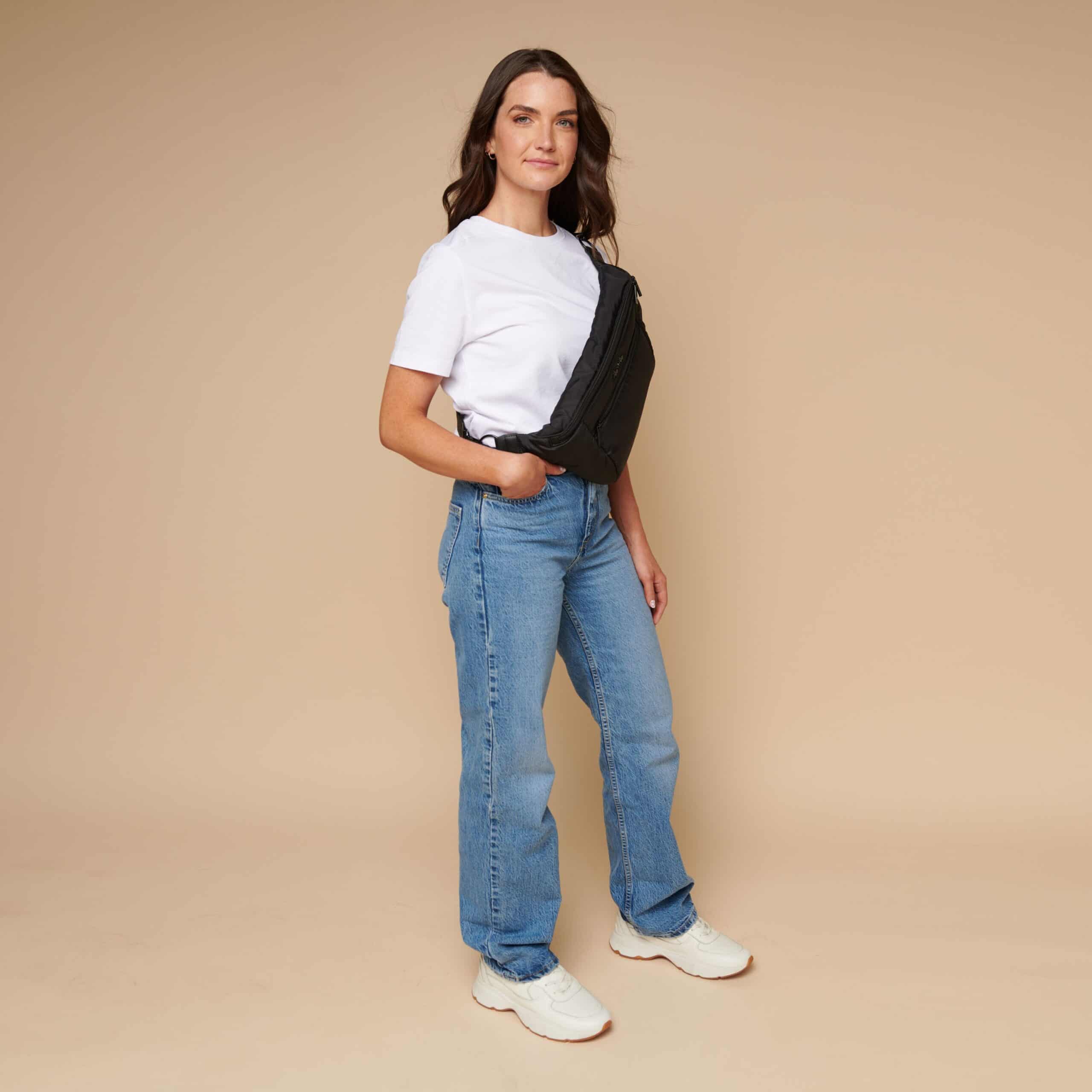 - Can be worn as a fanny pack, belt bag, crossbody bag or shoulder bag